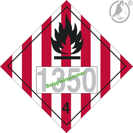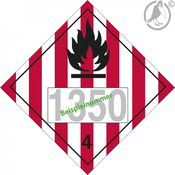 Gefahrgutkennzeichen der Klasse 4.1 „entzündbare feste Stoffe“ als PVC Folienetikett.
